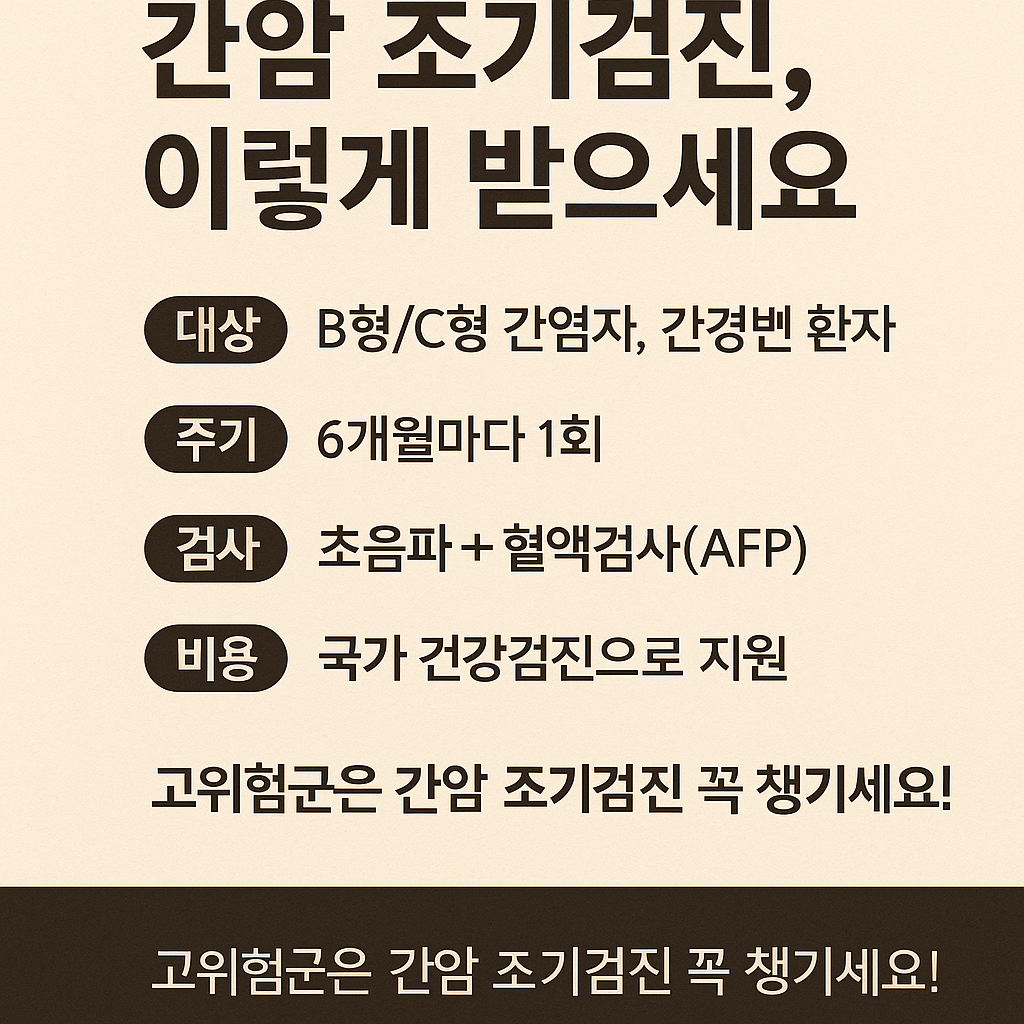 - 정기 검진 습관화: 초음파, AFP 종양표지자 검사 병행