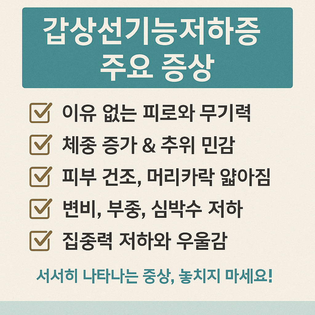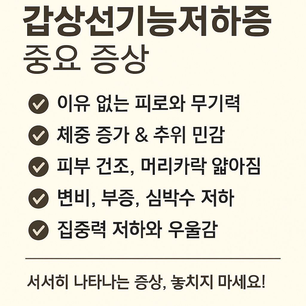 갑상선기능저하증은 갑상선 호르몬이 체내에서 부족하게 분비되면서 발생하는 내분비 질환으로, 다양한 전신 증상을 유발합니다. 특히 증상이 매우 서서히 진행되거나 비특이적이어서, 많은 경우 오랜 기간 진단되지 않고 지나갈 수 있습니다. 다음은 대표적인 증상들과 그 특징입니다.