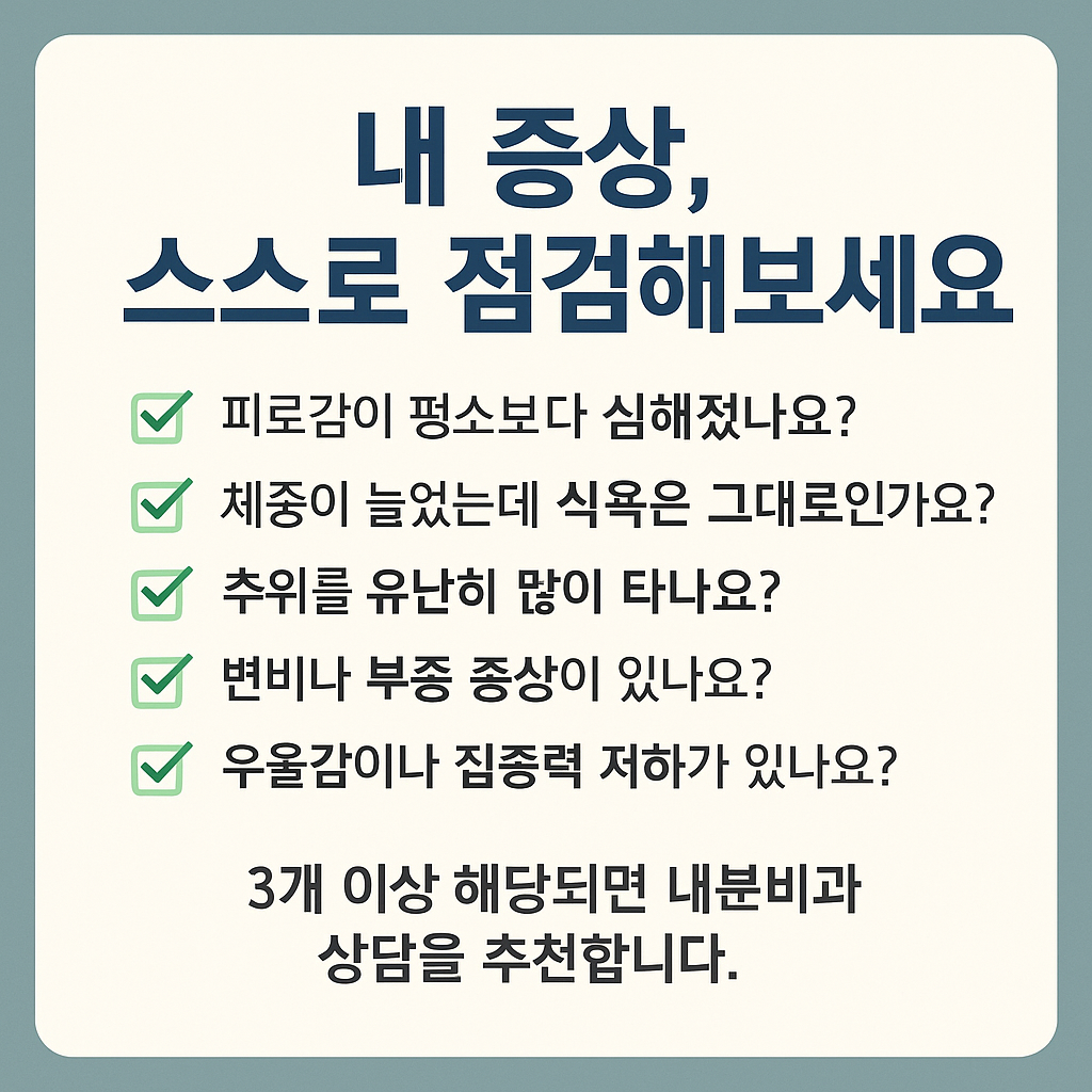 갑상선기능저하증은 인체 대사의 중심 축인 갑상선 호르몬이 부족해지는 질환으로, 피로감, 체중 증가, 추위 민감 등 다양한 증상으로 일상에 불편을 줄 수 있습니다. 하지만 조기 진단과 꾸준한 관리만 이루어진다면, 일상생활을 건강하게 유지할 수 있는 질환입니다.