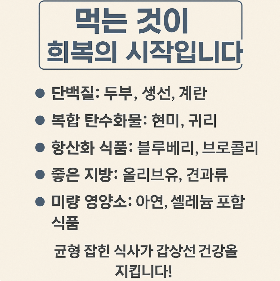 갑상선암에좋은음식에 대해 2025년 기준 최신 정보를 반영하여 정리했습니다. 수술 후 회복을 돕는 영양소, 피해야 할 음식, 그리고 식사 관리법까지 실제 환자들에게 도움이 되는 정보를 중심으