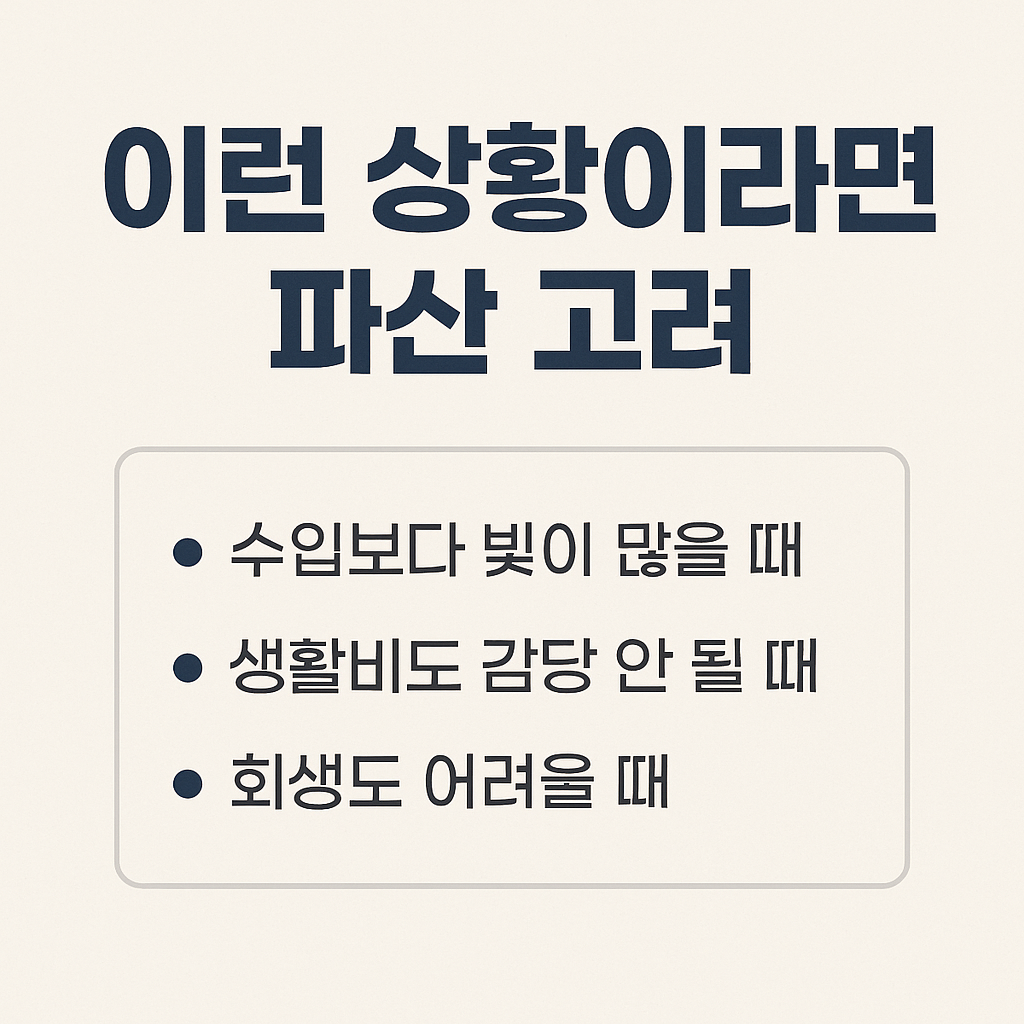 - 60대 이상: 정기소득이 없고 자산 정리가 끝난 경우, 파산이 현실적인 대안일 수 있음