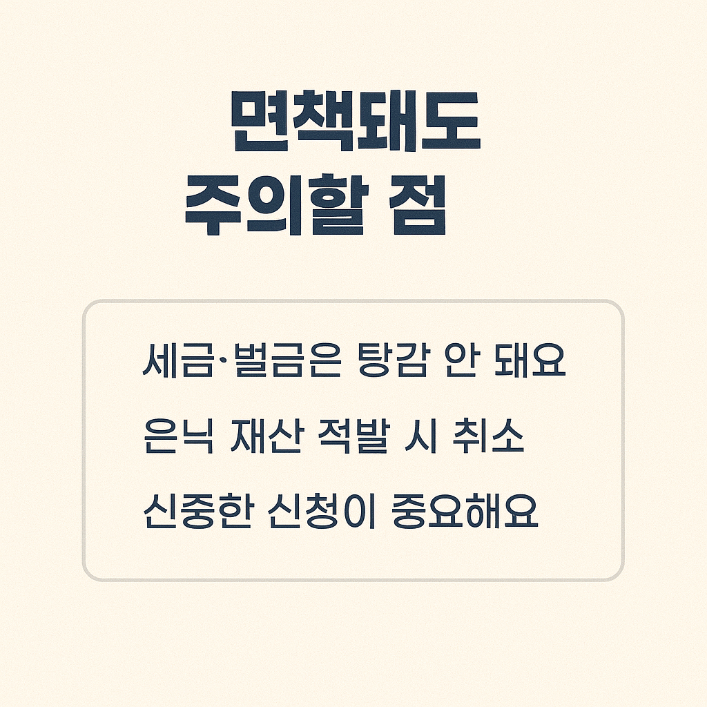 - 면책이 확정되어도 세금, 과태료, 벌금 등은 탕감되지 않음