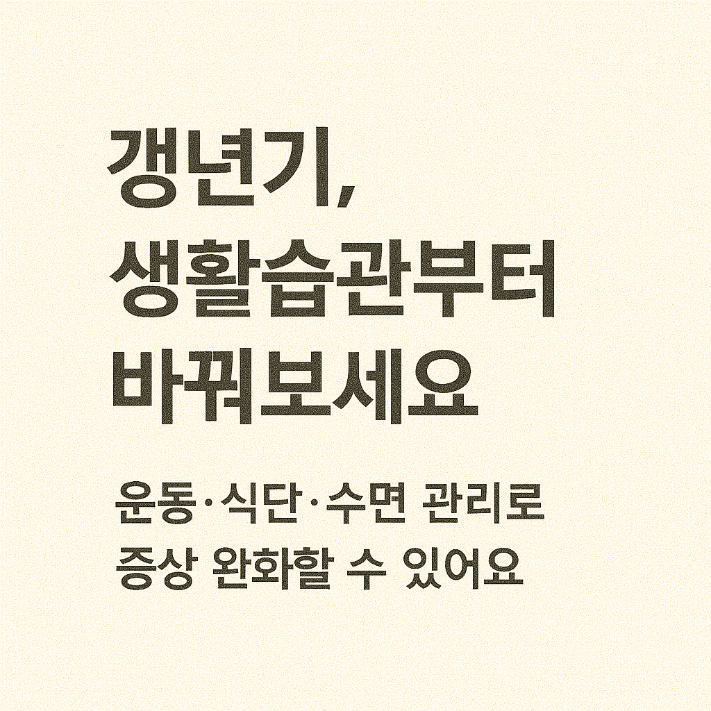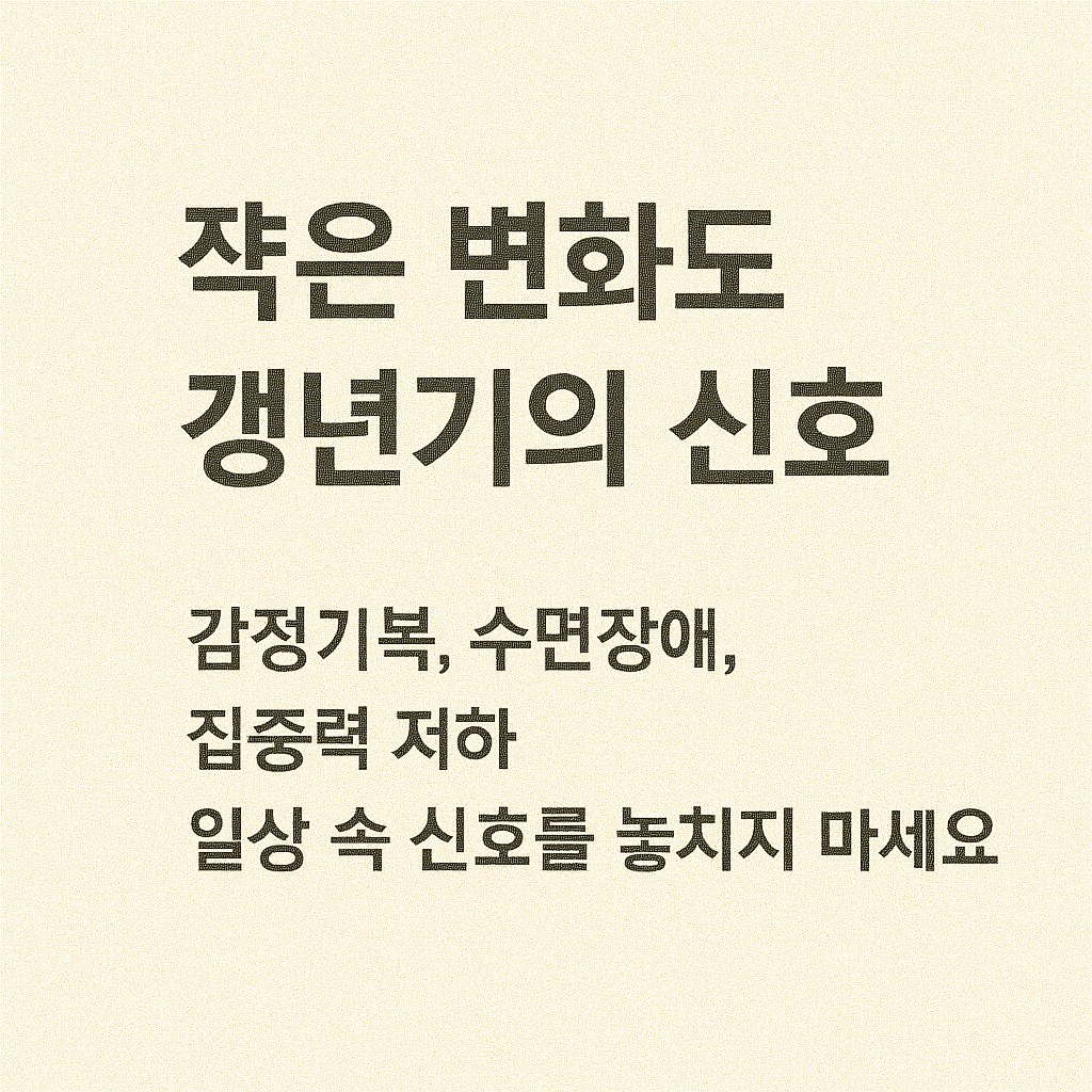 갱년기 증상을 조기에 인지하고 대응하는 것이 삶의 질을 지키는 첫걸음입니다.