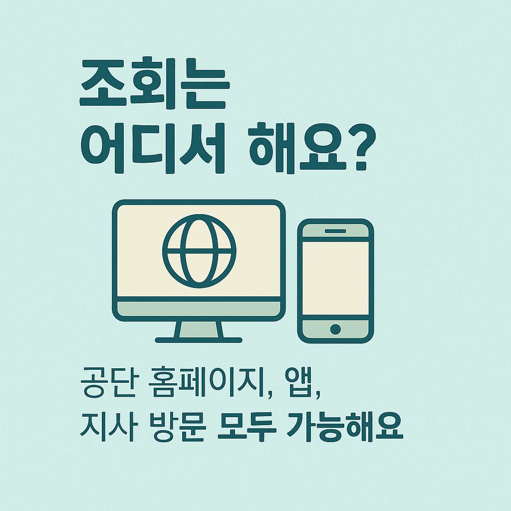 | 조회 방법 | 공단 홈페이지, 모바일 앱, 전화, 지사 방문 |