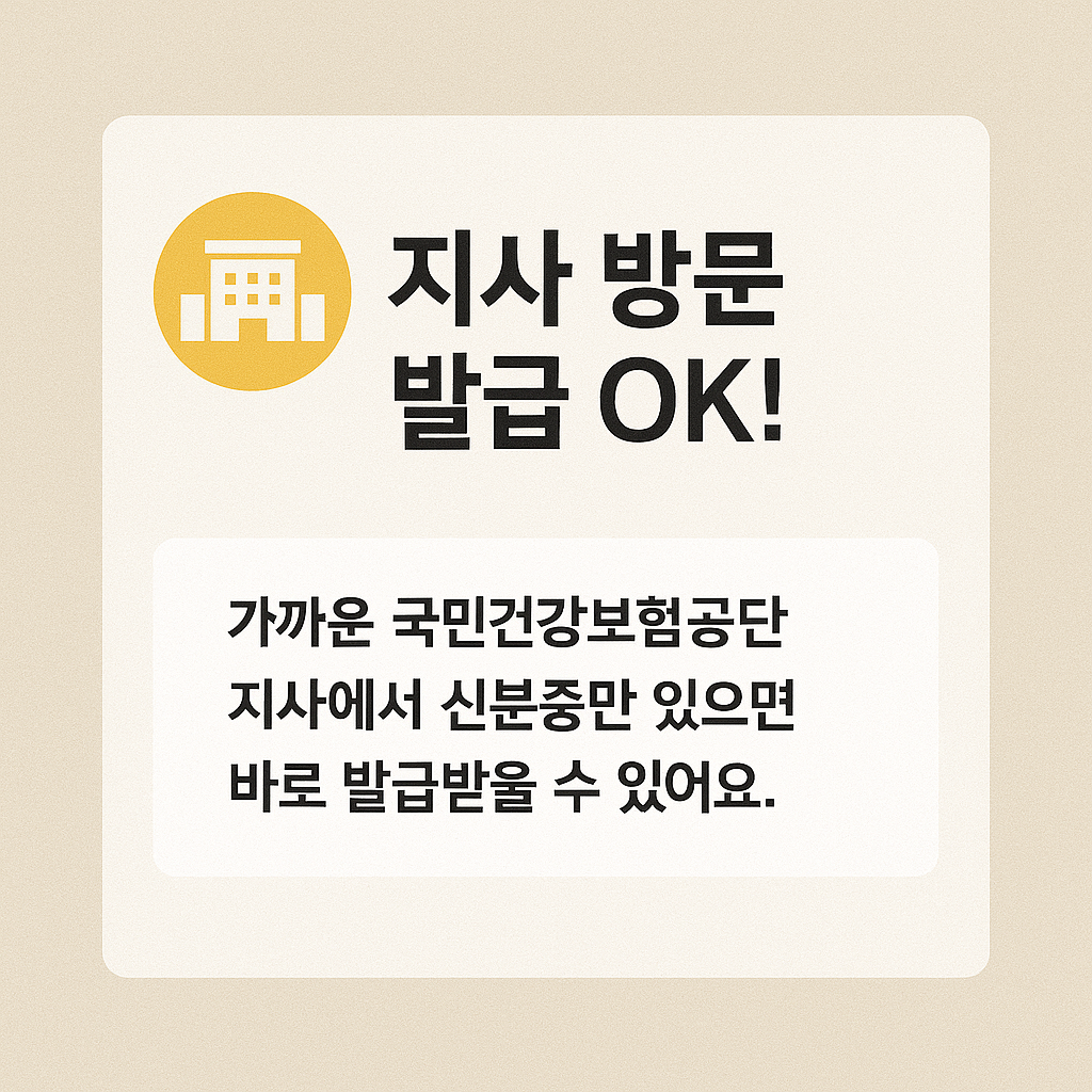 - 공단 민원창구에서는 건강보험증, 보험료 납부확인서, 직장가입 확인서 등 다양한 문서를 함께 발급받을 수 있어, 한 번 방문에 여러 서류를 처리할 수 있는 장점도 있습니다.