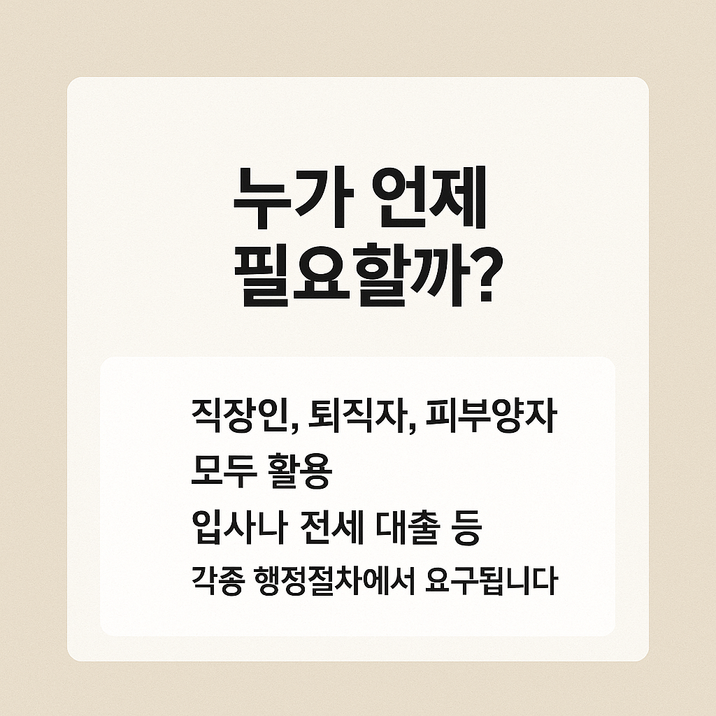 - 2025년 기준, 취업, 이직, 대출, 각종 국가 지원제도 신청 시 요구되는 핵심 서류 중 하나로 분류됩니다.