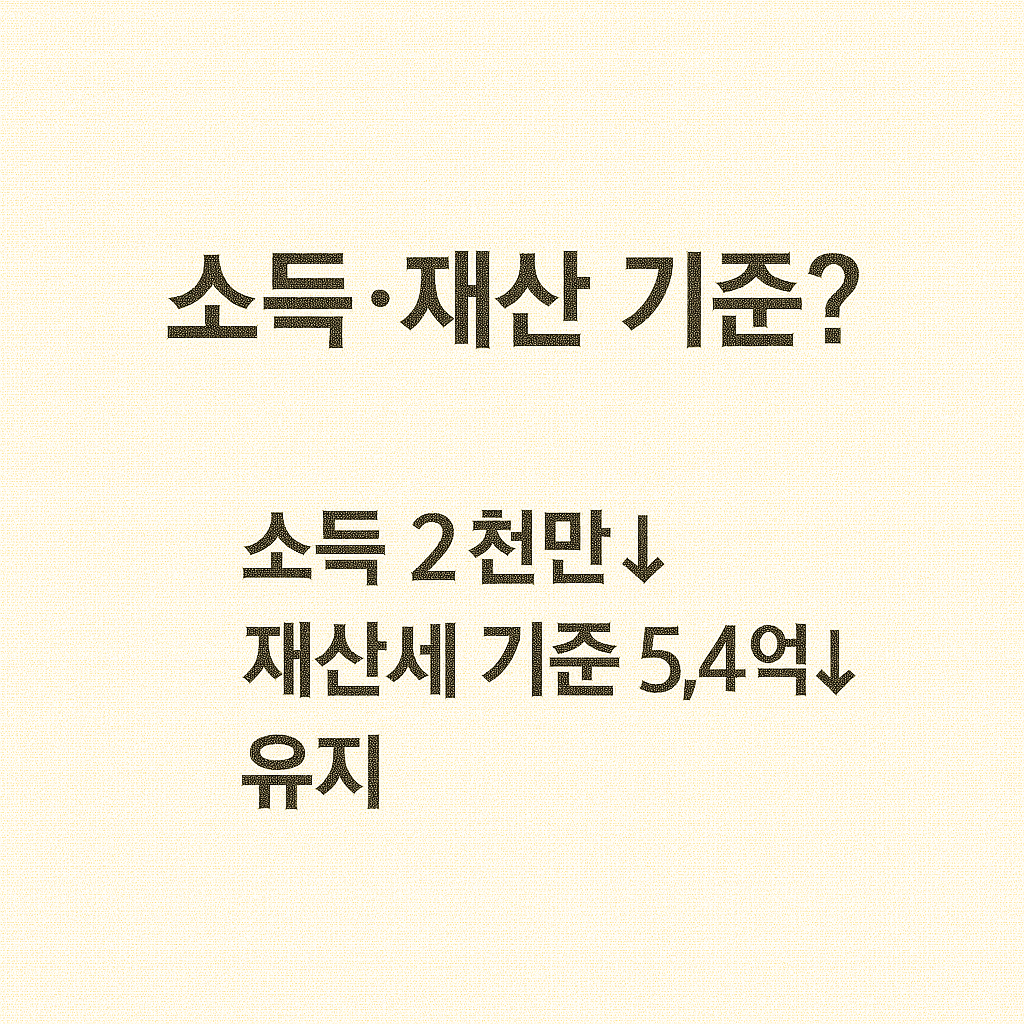 | 재산 5.4~9억 원 | 소득 1,000만 원 이하만 인정 | 이중 기준 적용 |