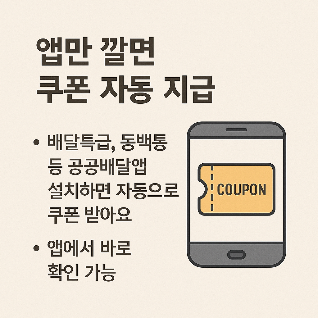 - 앱 선택 시에는 쿠폰 발급 방식, 지역화폐 연계 여부, 이벤트 주기, 최소 주문 금액 등을 종합적으로 고려해야 합니다.