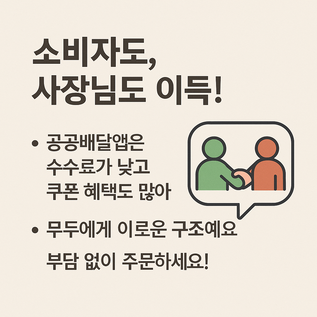 - 공공배달앱 소비쿠폰 주문은 단순한 할인 수단을 넘어서, 지역경제 활성화와 가계 소비절감이라는 두 마리 토끼를 잡는 정책입니다.