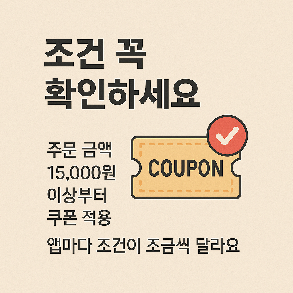 - 각 지역 및 앱에 따라 조건은 조금씩 다르며, 앱 내 ‘쿠폰 안내’ 혹은 ‘이벤트 공지’를 반드시 확인해야 합니다.