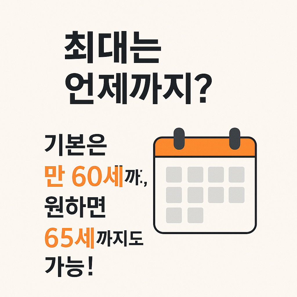 - 대상: 만 60세 도달자 중 10년 미만 또는 추가 납입 원하는 자