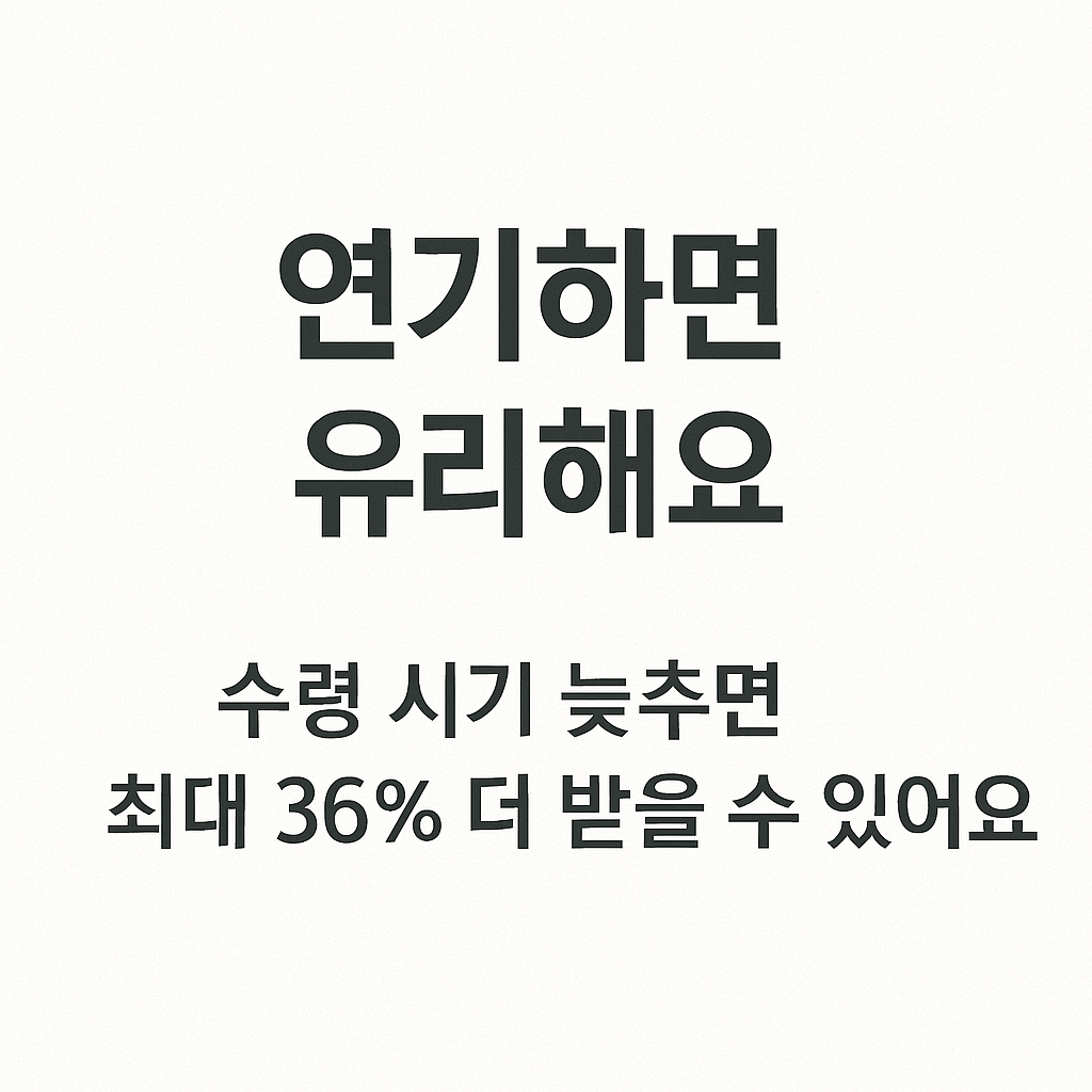 - 연기 수령: 수령 시점을 미룰수록 수령액 증가. 연 7.2%씩 최대 36% 가산