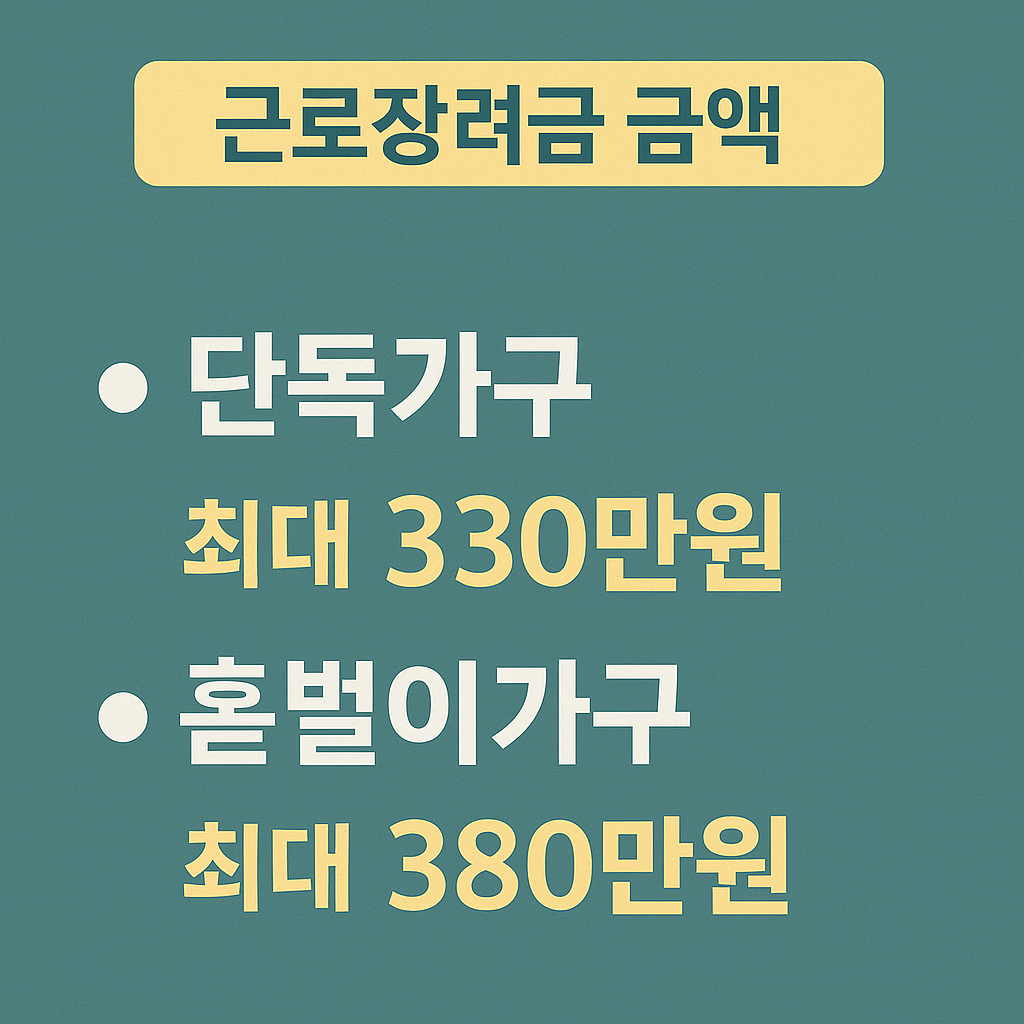 부양 자녀 수, 배우자 유무, 기타 세부 요건에 따라 실제 지급액은 달라질 수 있으며, 신청 전 국세청 홈택스의 장려금 모의 계산기를 활용해볼 것을 권장합니다.