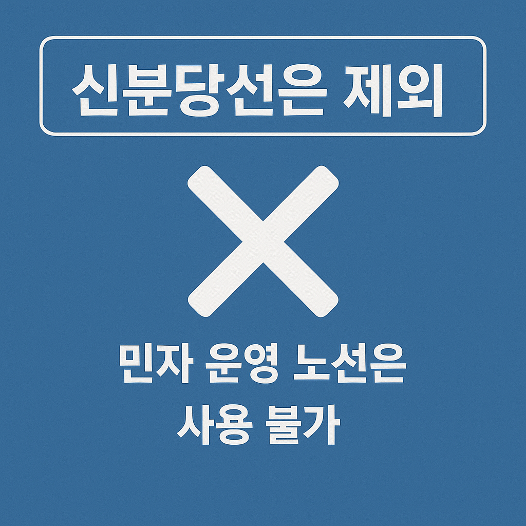 - 광역버스: 서울시 면허 외 차량은 사용 불가 (예: M버스, G버스 등)