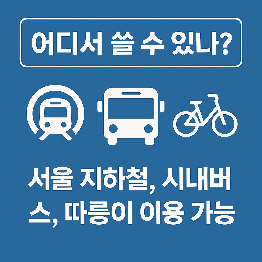 단, 광역버스, 민자노선, 서울 외 면허 교통수단은 제외되므로 교통수단 종류보다는 ‘운영 주체’를 기준으로 사용 가능 여부를 판단하는 것이 중요합니다.