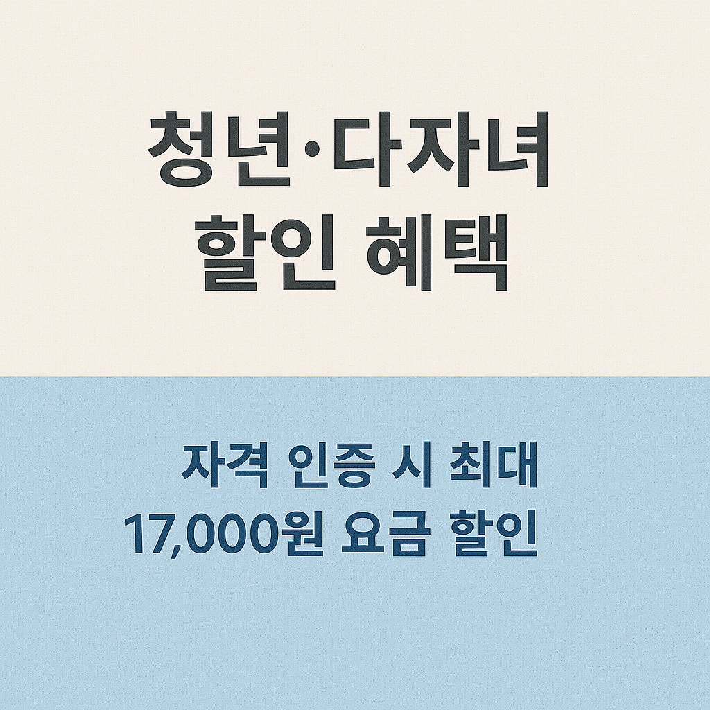 | 청년, 다자녀, 저소득층 등 | 사전 인증 후 할인 요금 적용 | 최대 17,000원 이상 할인 가능 |