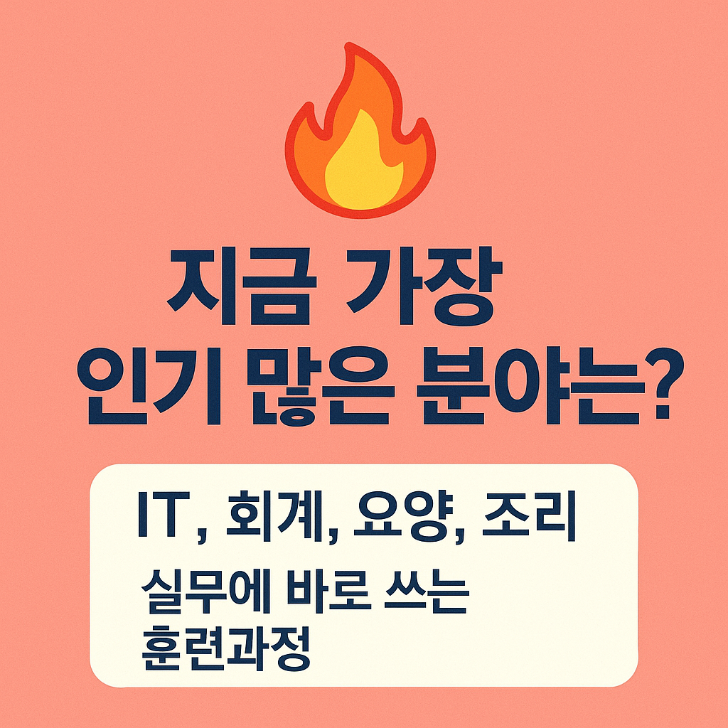 내일배움카드로 배울수 있는것은 분야별로 매우 다양하지만, 특히 수강률과 수료율이 높은 인기 분야는 공통된 특징이 있습니다. 이들은 실무 활용도가 높고, 취업·이직 시 연결 가능성이 크며, 정부 지원율도 높기 때문에 많은 이들이 선택합니다.