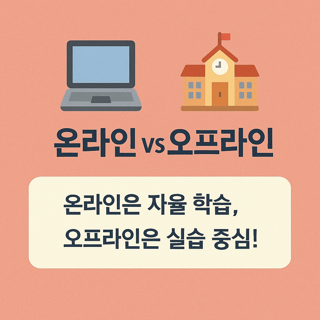 장점: 자율 시간 운영, 반복 학습 가능, 이동 없이 수강 가능 단점: 실습 부족, 집중력 유지 어려움, 직접 피드백 어려움