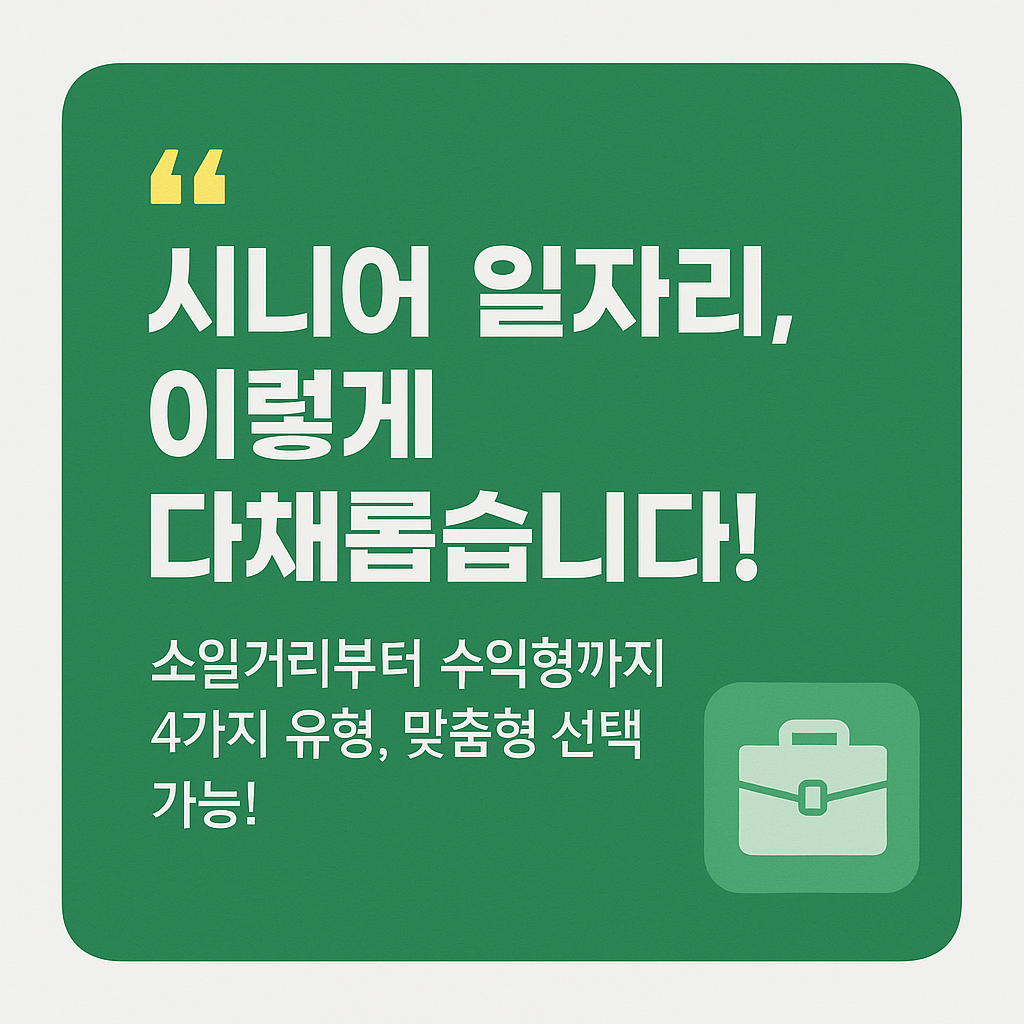 2025년 기준으로 제공되는 노인일자리는 크게 네 가지 유형으로 구분됩니다. 각각의 유형은 어르신들의 연령, 건강 상태, 직업 경험, 활동 가능 시간 등을 고려하여 맞춤형으로 설계되어 있습니다. 다음은 각 유형의 개요와 구체적인 활동 내용입니다.