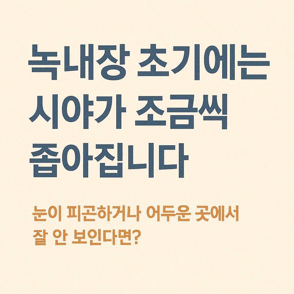 녹내장 초기증상은 느리고 미묘하지만 분명한 신호로 시작됩니다. 가벼운 증상이라도 반복되거나 이상하다고 느껴질 경우, 병원 진료를 통해 시야 손실을 막는 것이 최선의 대응입니다.