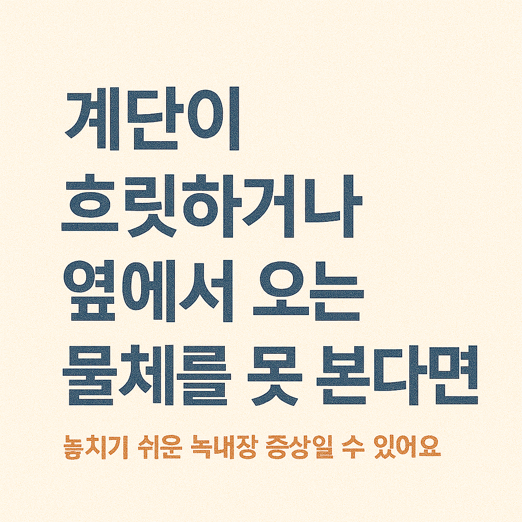 - 계단을 내려갈 때 바닥이 흐릿하거나 불안하게 느껴진다