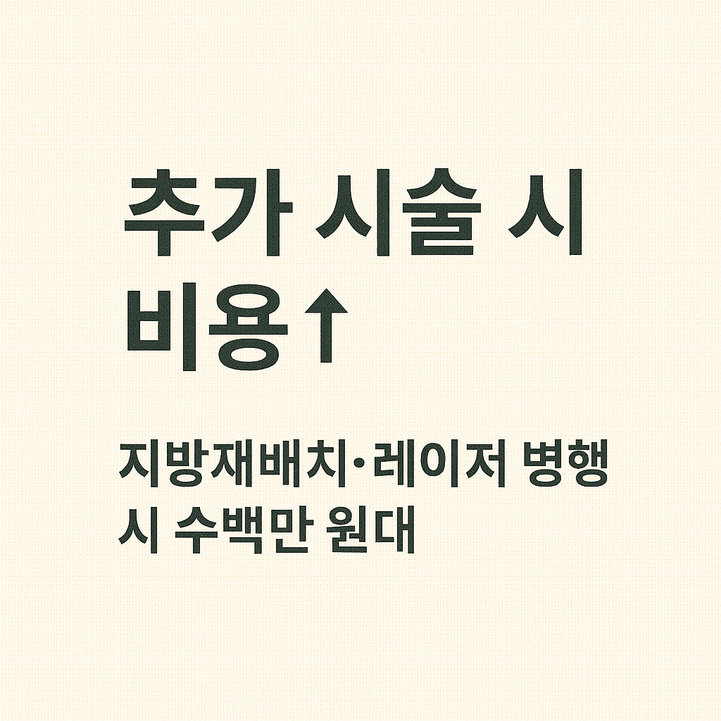 | 레이저 병행 | +20 ~ 50만 원 | 흉터 최소화 및 부기 완화 목적 |