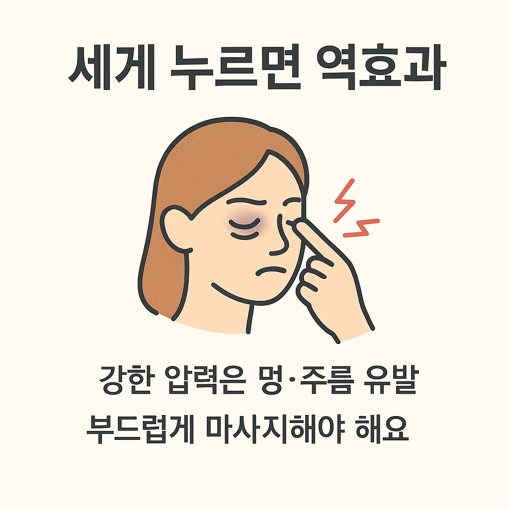 | 눈을 강하게 비비기 | 혈관 파열, 피부 손상 | 약지 손가락만 사용 |
