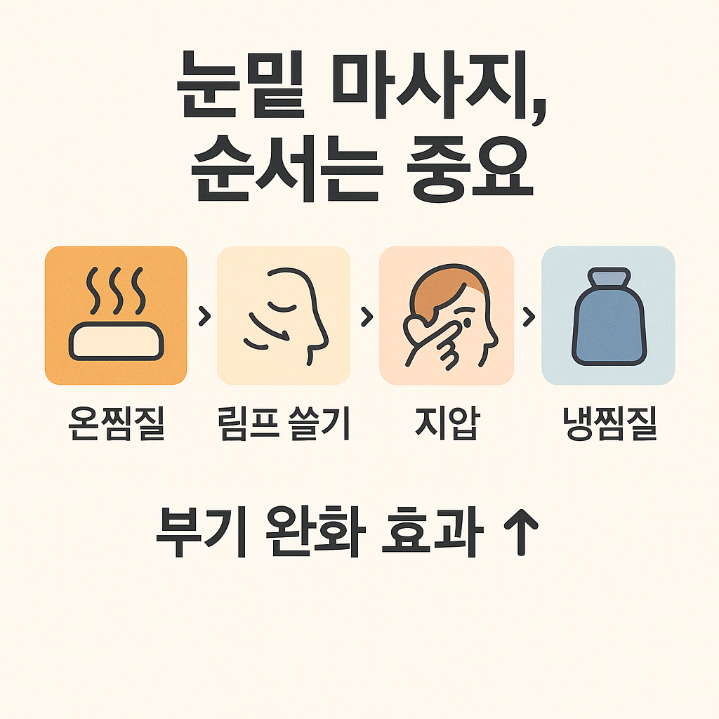 | 4단계 | 차가운 찜질팩 | 눈 밑에 1분 정도 냉찜질 | 진정·부기 완화 |