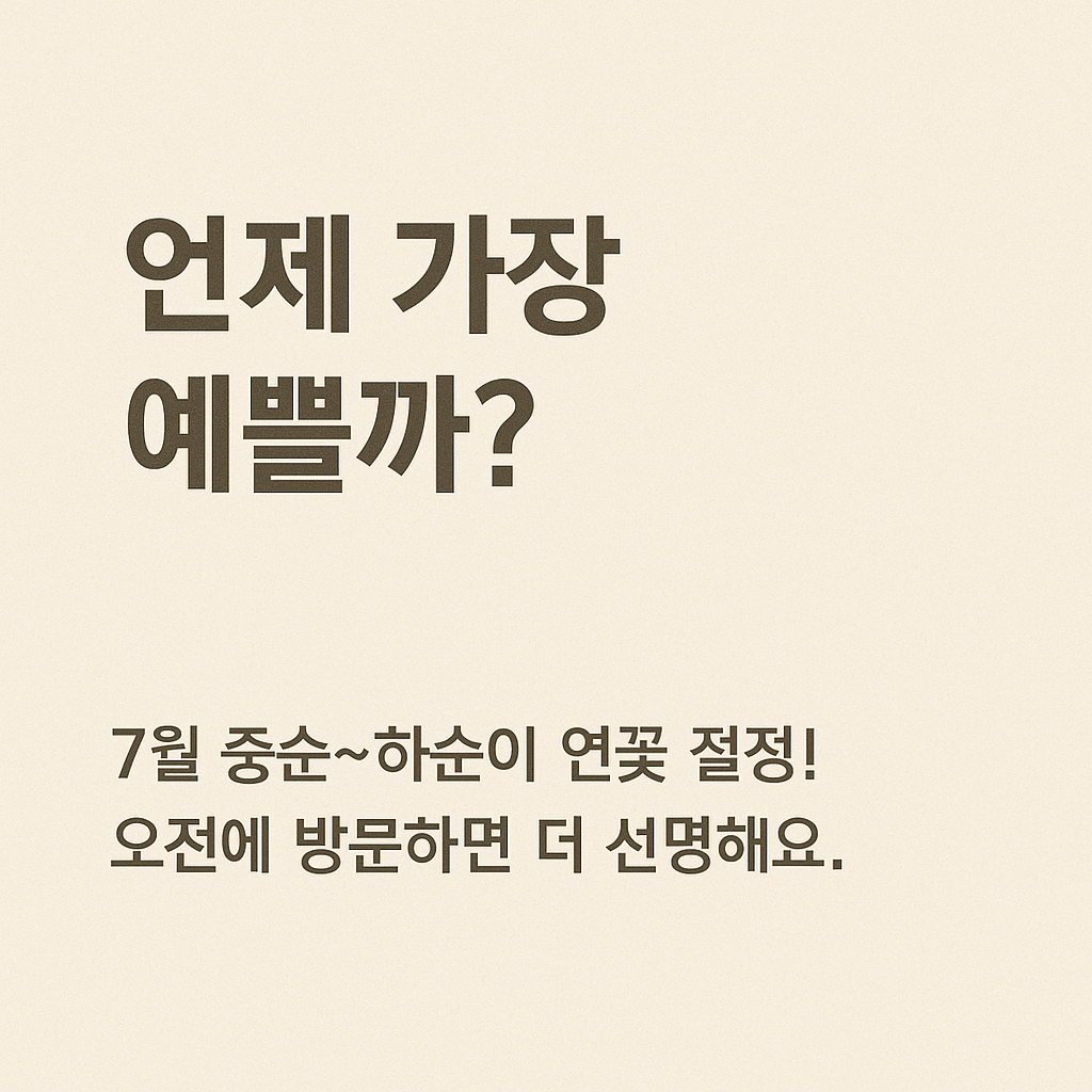 | 홍련/백련 | 6월 말 ~ 7월 말 | 가장 널리 피는 품종, 대표 포토존에 집중 |