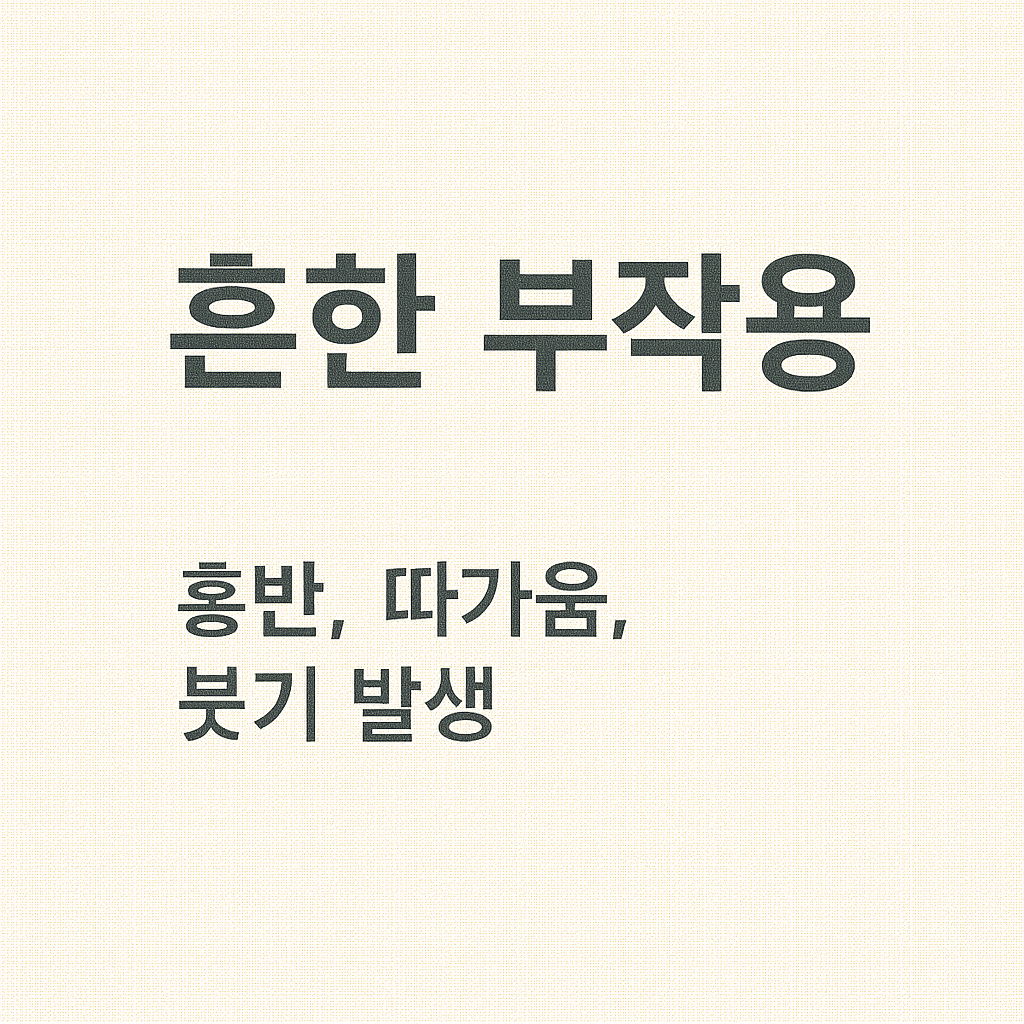 | 건조 및 가려움 | 각질, 벗겨짐, 간지러움 | 1~5일 | 보습제 수시 사용, 자극 피하기 |
