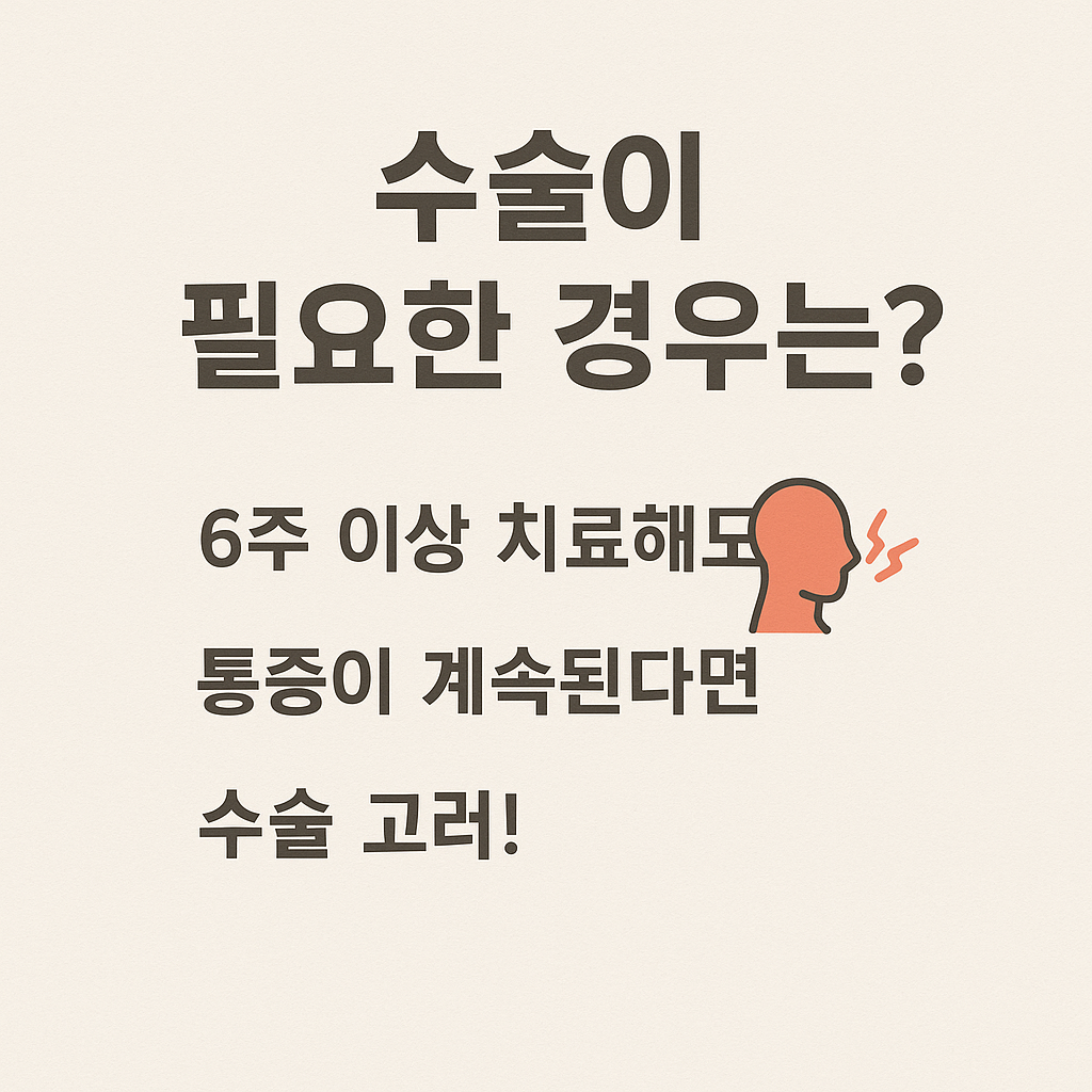- 비수술적 치료 6주 이상 시행 후에도 증상 지속