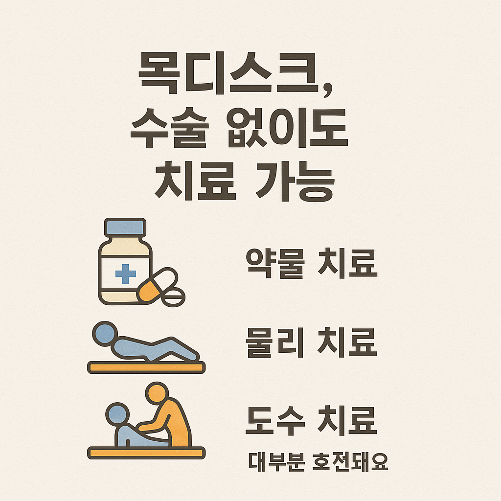 초기 또는 중등도 목디스크 환자에게 우선 적용되는 방식으로, 통증을 조절하고 일상생활로 복귀를 돕는 데 목적이 있습니다.