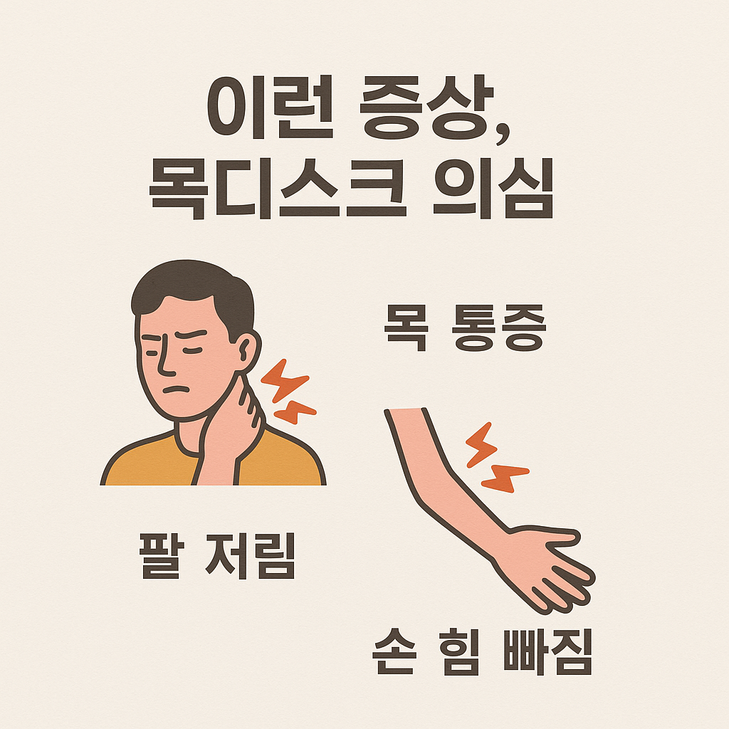 - 주요 증상은 목 통증, 팔·손 저림, 근력 저하, 두통, 어지럼 등입니다.