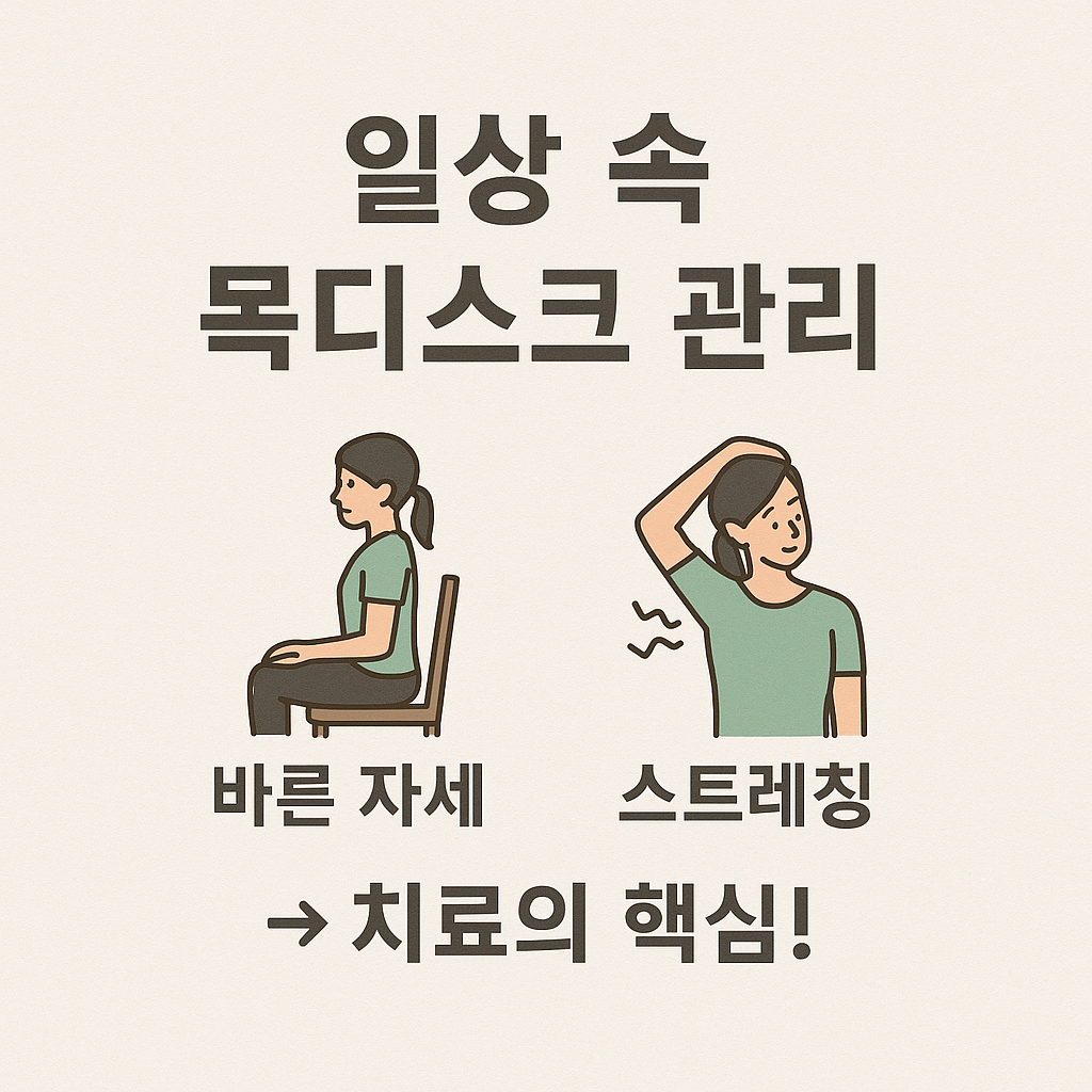 | 운동치료 | 경추 안정화 운동, 자세 교정 운동 등으로 장기적 회복 지원 | 매일 10~15분 자가 운동 병행 |