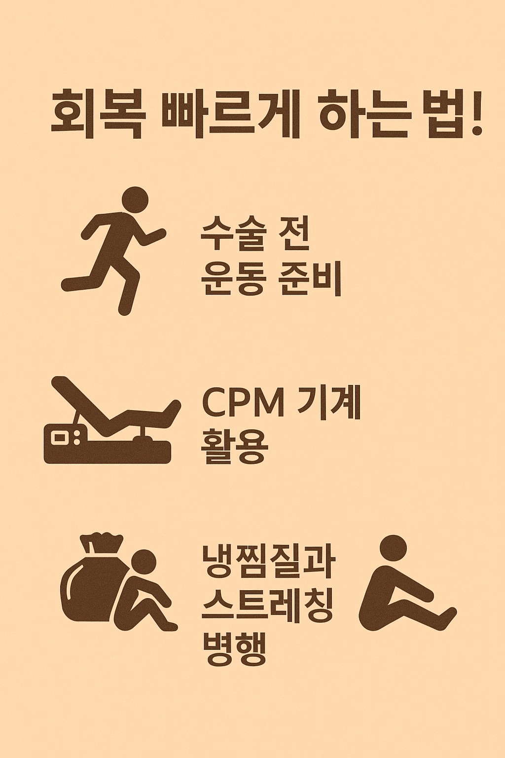 | CPM 기계 활용 | 수술 후 48시간 이내 시작, 하루 1~2회 30분 이상 사용 권장 |