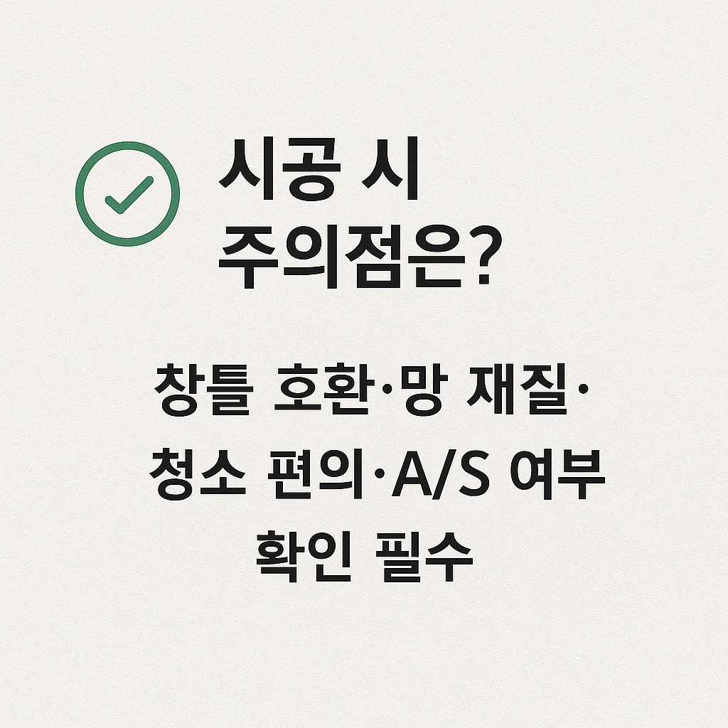 | 환기·채광 | 밝은색 망 또는 통기성 강화형 선택 |