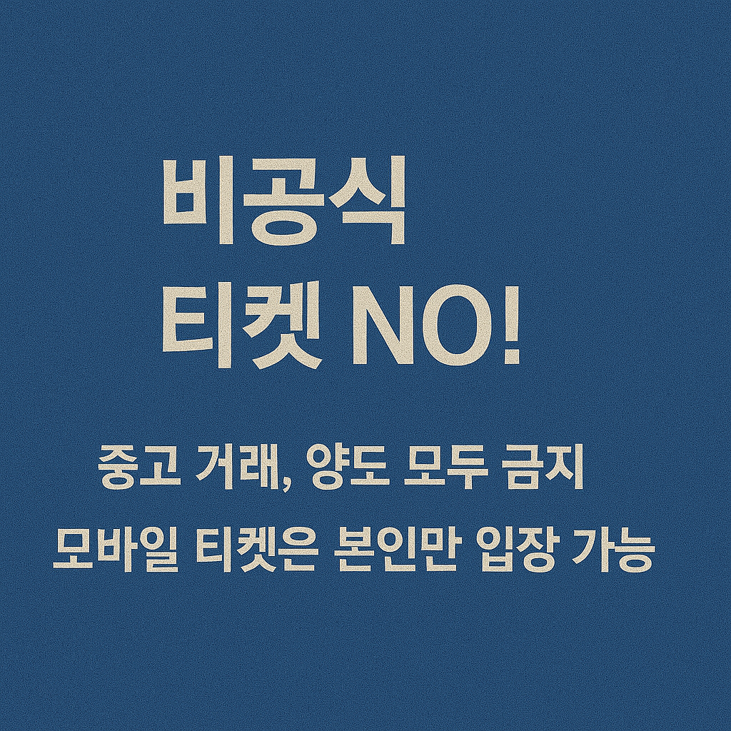 공식 예매 외 티켓으로는 공연 당일 입장이 거부될 수 있으며, 명의 대조나 QR코드 검증을 통해 위조 여부가 체크됩니다. 안전한 예매를 위해 반드시 공식 채널만 이용하세요.