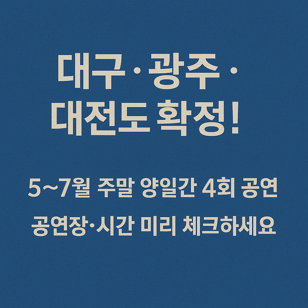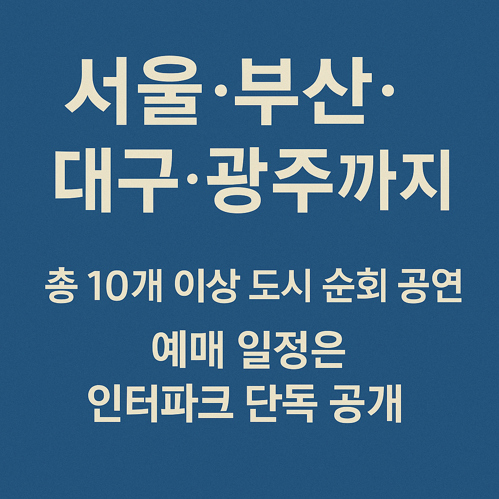 위 일정은 2025년 3월 기준 공개된 1차 투어 일정이며, 전주·성남·청주·인천·강릉·포항 등도 추가 발표가 예고돼 있습니다. 일부 지역은 관객 수요나 공연장 대관 일정에 따라 날짜가 조정될 수 있으며, 추가 도시 및 앙코르 공연은 상반기 투어 종료 후 순차적으로 안내됩니다.