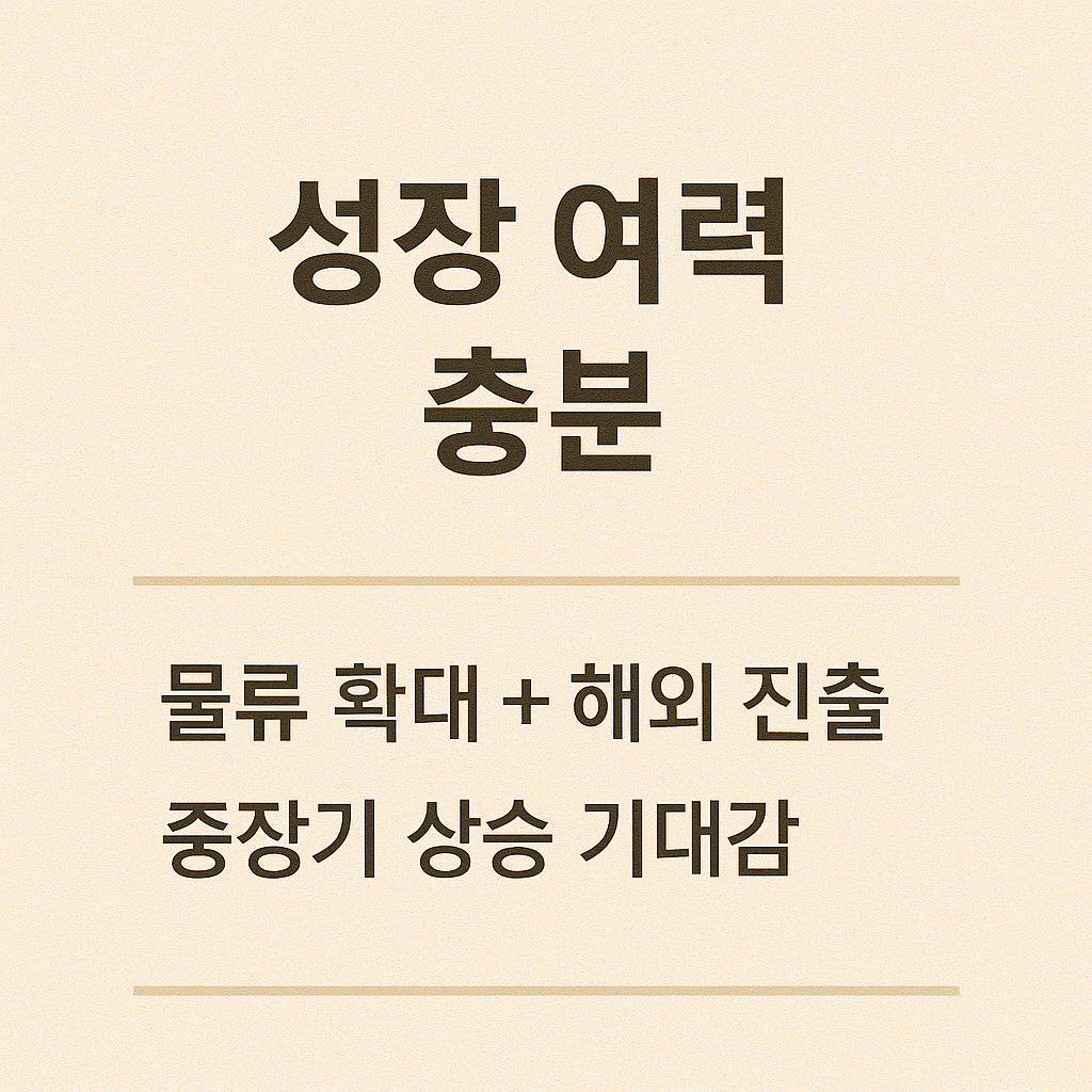 | 해외 진출 | 동남아 진출 초기단계 | 수출입 물류 수요 확대 기대 |