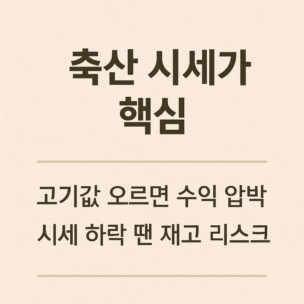 이 중 가장 중요한 변수는 축산물 가격입니다. 한우, 돼지고기, 닭고기 등의 시세가 오르면 B2B 매입 가격이 높아지지만, 소비자가격에 전가하지 못하면 영업이익률이 낮아질 수 있습니다. 반면, 시세 하락 시에는 재고 평가손실 위험도 존재하기 때문에 가격의 상하 변동은 주가에 큰 영향을 미칩니다.