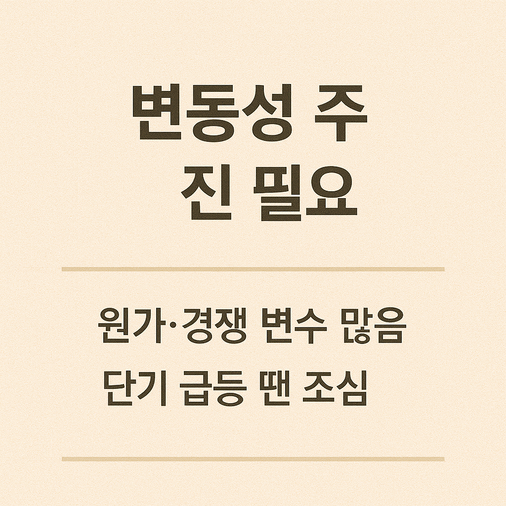 하지만 동시에 투자에 앞서 고려할 부분도 분명 존재합니다. 원재료 단가 상승, 경쟁사의 시장 점유율 확대 가능성, 정책 변화에 따른 가격 조정 압박 등은 향후 주가 흐름을 제약할 수 있는 변수입니다. 특히 중소형 코스닥 종목 특유의 유동성 문제와 단기 급등에 따른 조정 리스크도 함께 고려해야 합니다.