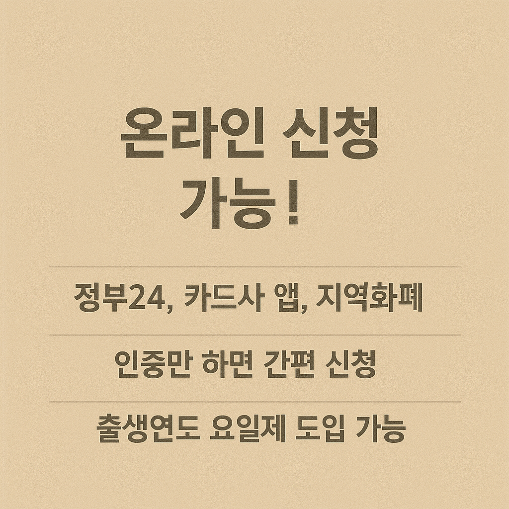 - 온라인 경로: 정부 24, 카드사 앱, 지역상품권 앱