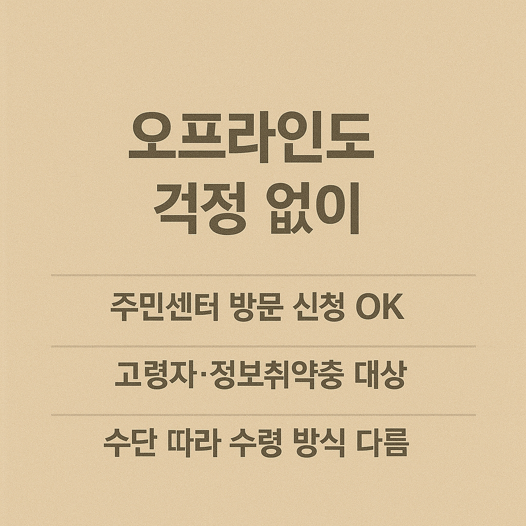 디지털 접근이 어려운 분들을 위한 읍면동 주민센터 방문 신청도 가능합니다.