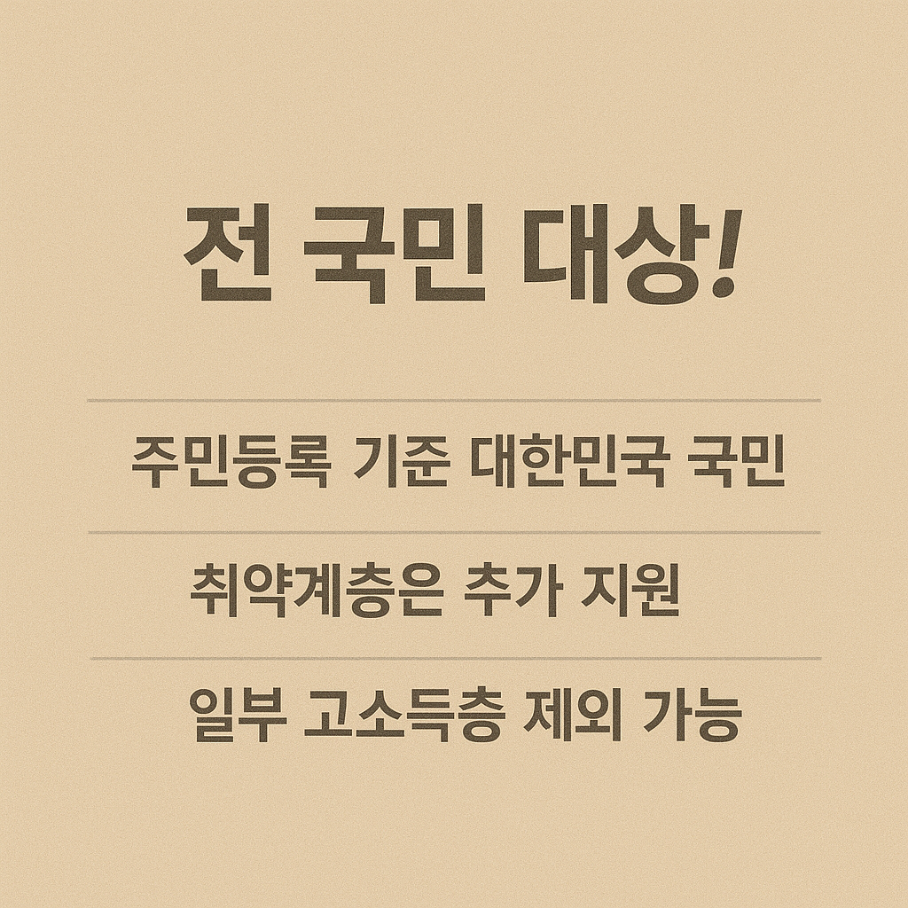 - ① 일반 지급 대상: 대한민국 국적을 가진 국민 전원 (2025년 6월 기준 주민등록상 거주자)