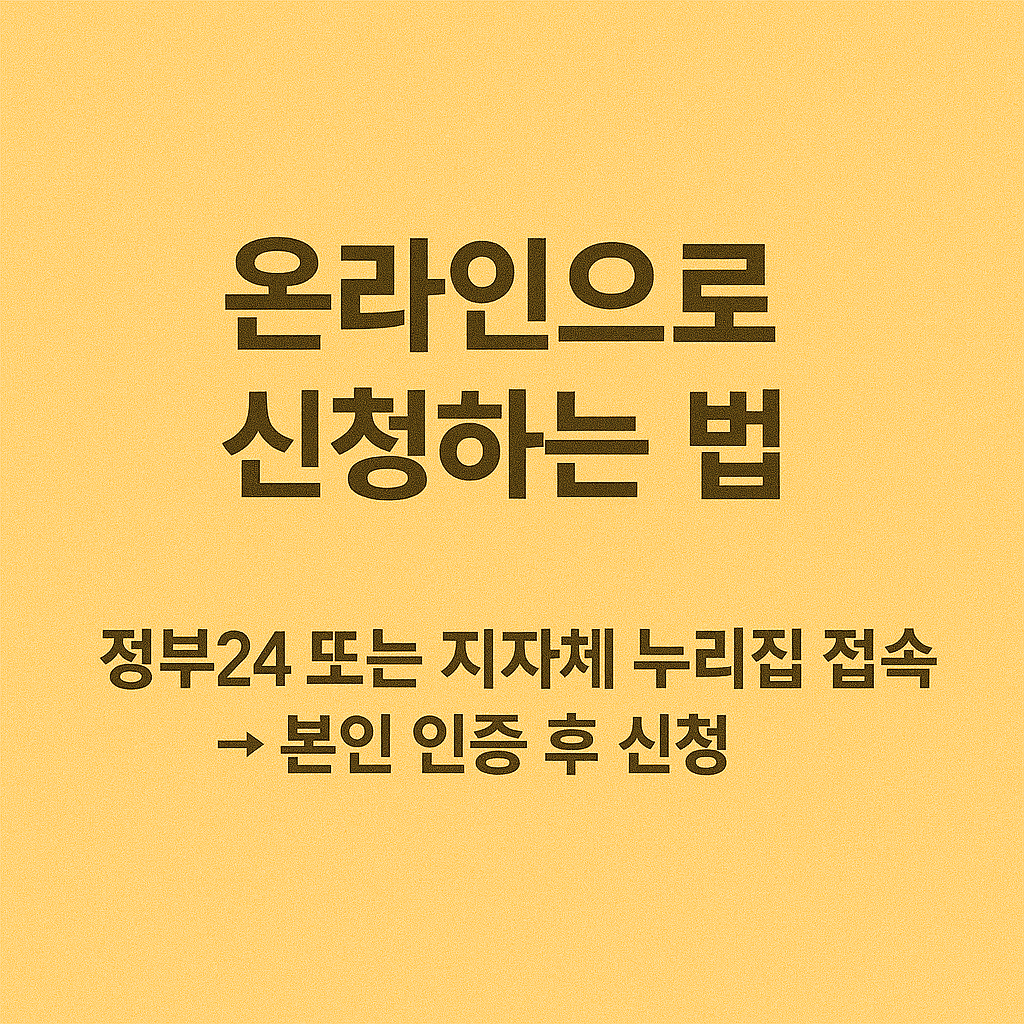 - 온라인 신청은 일반적으로 지자체 통합민원 시스템 또는 복지포털에서 가능