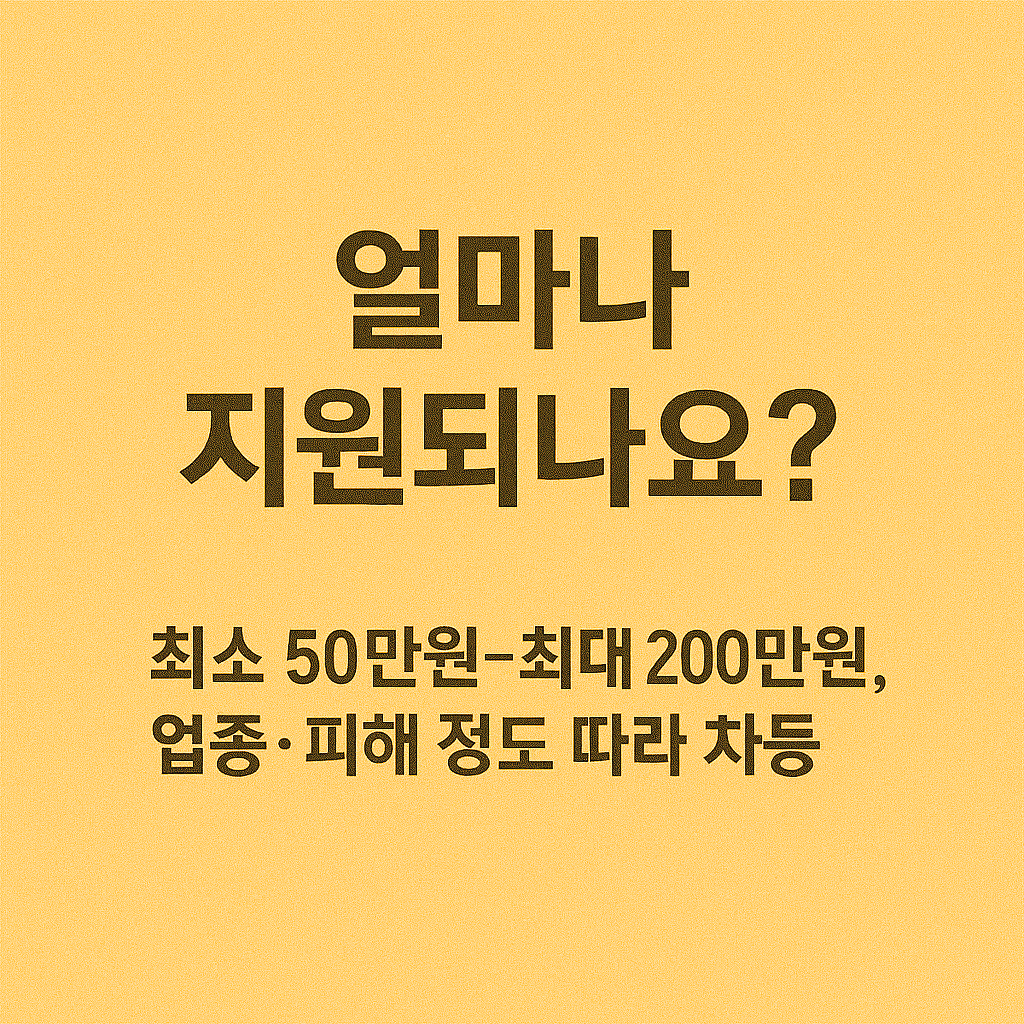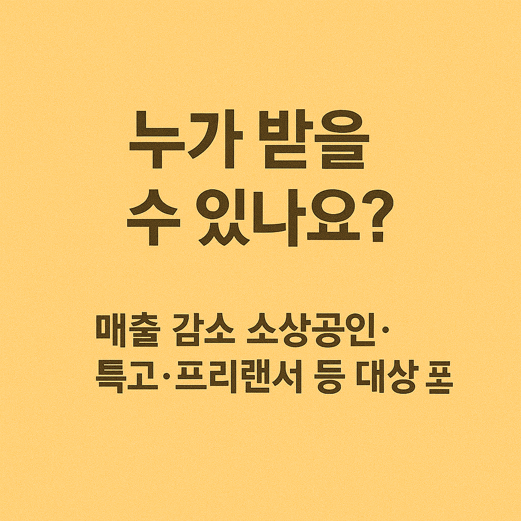 | 소상공인 및 영세자영업자 | 사업체당 최대 100만 원 | 계좌 입금 또는 선불카드 |