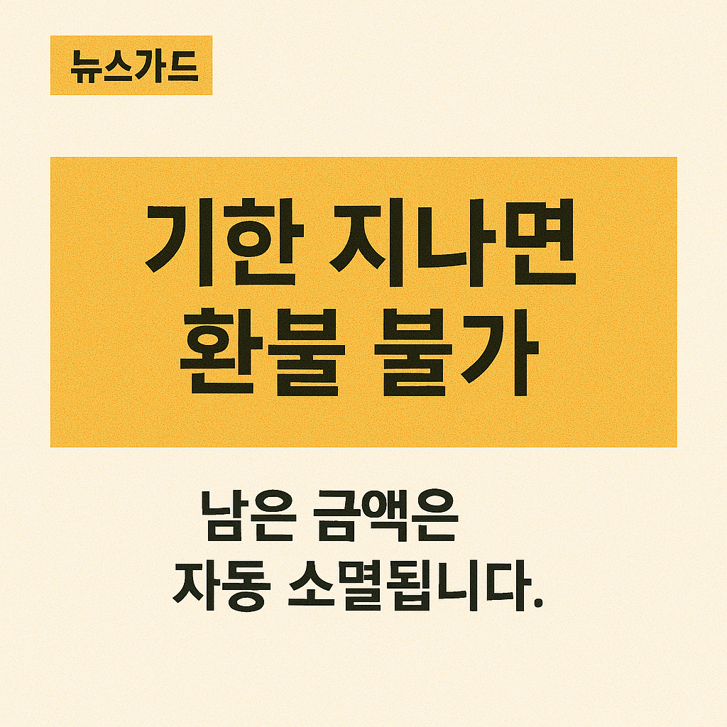 - 소멸 규정: 사용기한 이후 잔액은 환불 불가, 자동 소멸 처리됨