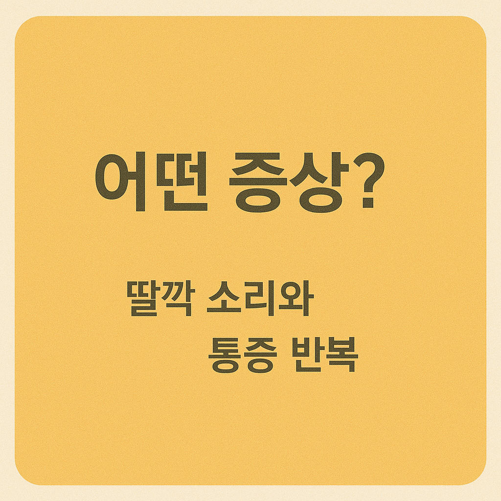 | 중기 | 걸림 증상, ‘딸깍’ 소리 | 손가락 구부릴 때는 괜찮지만, 펼 때 걸리며 순간 튀어 오름 |