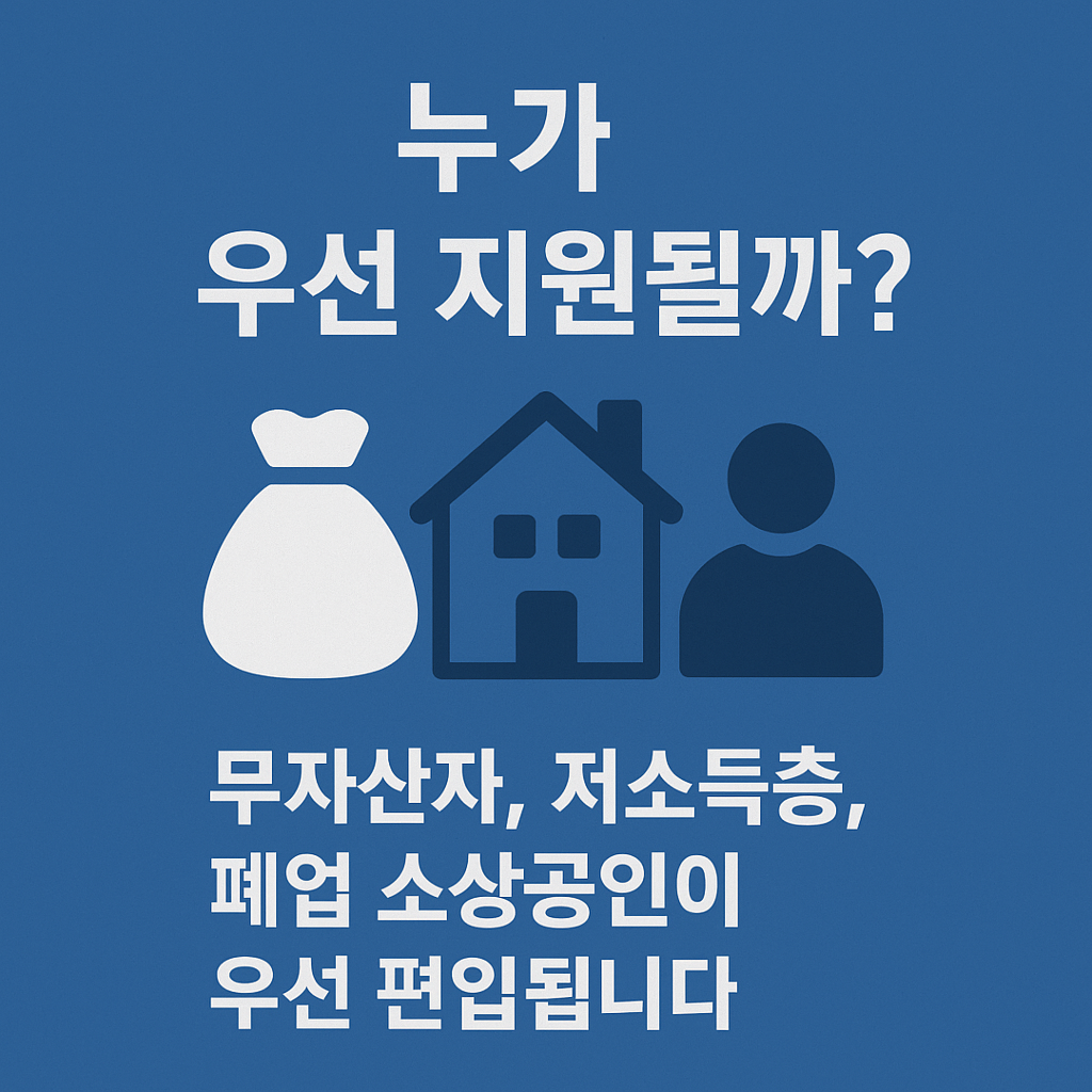 | 지원 우선 순위 | 취약계층(고령층, 저소득층, 폐업자 등) |