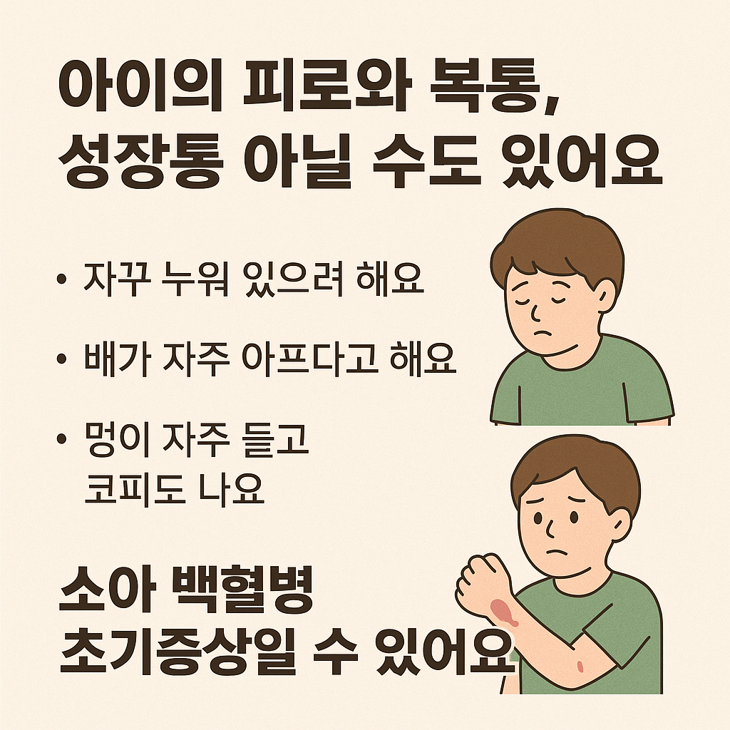 아이들은 증상을 명확히 표현하기 어려워 성장통, 소화 불량, 일반적인 피로로 오인되기 쉽습니다. 따라서 보호자의 세심한 관찰이 무엇보다 중요합니다.